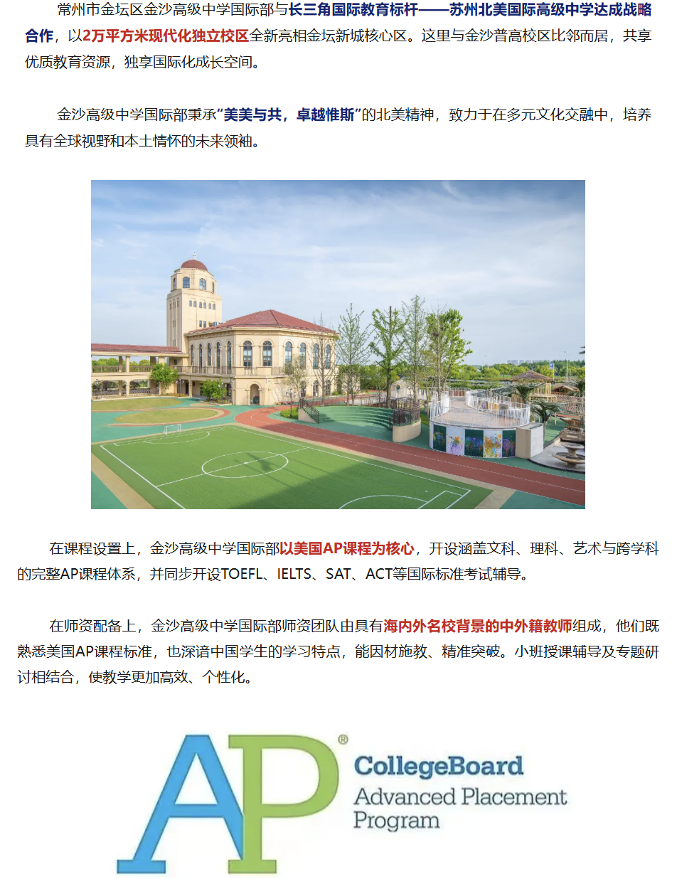 金沙高级中学国际部,做常州领先的国际高中