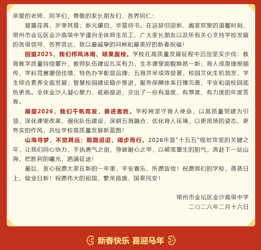 金马奋蹄启新程 实干笃行谱华章 | 金沙高级中学祝大家新春快乐!