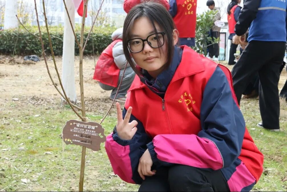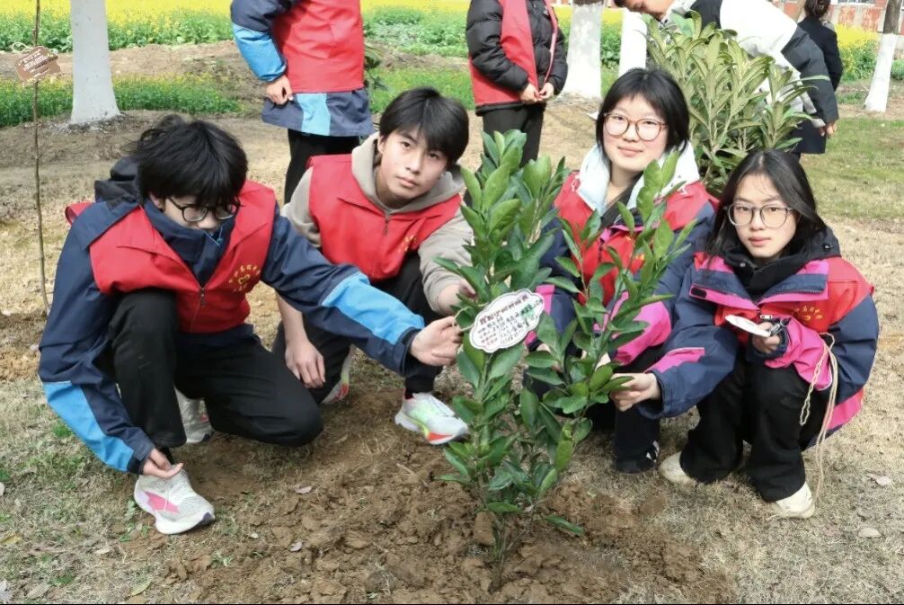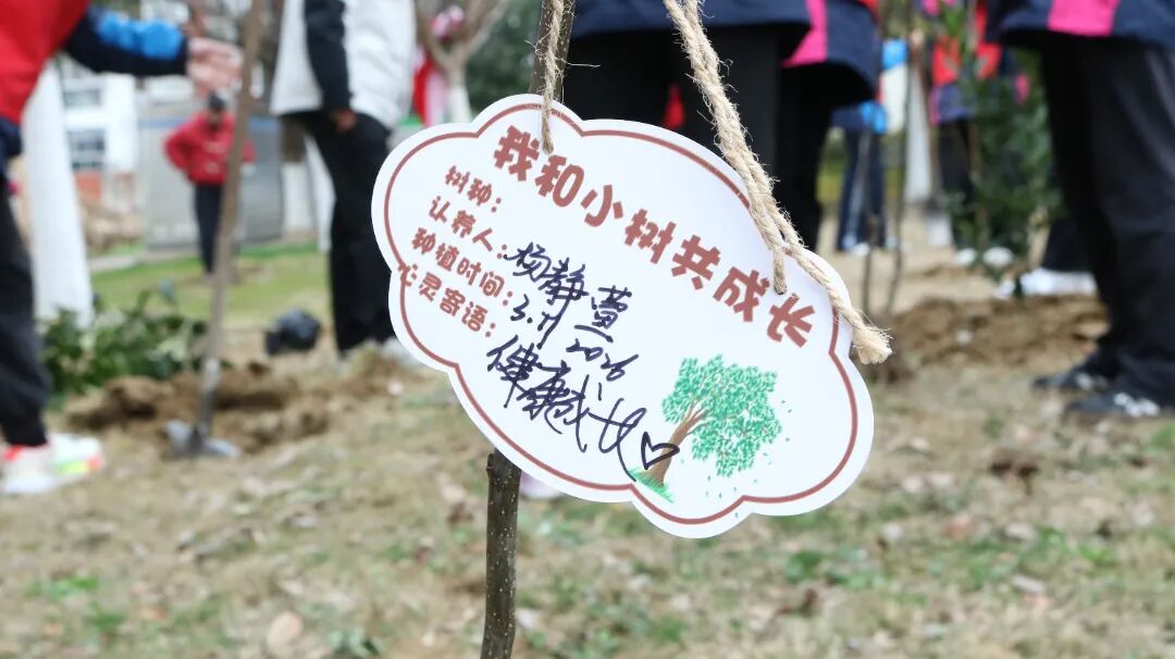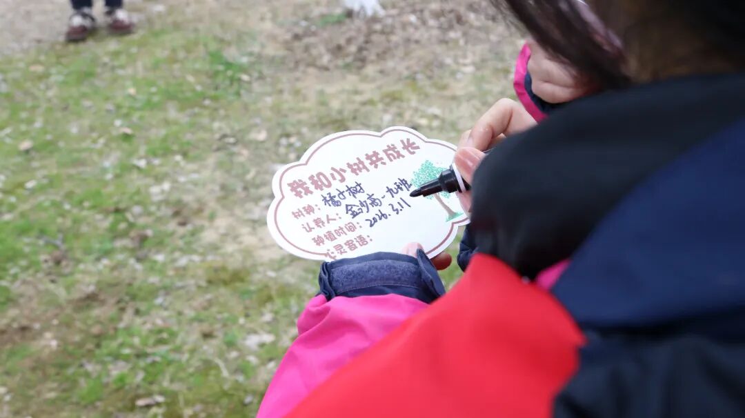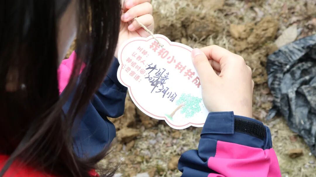 学生志愿者们认真写下专属“认养卡”,将缀满“健康成长”“硕果累累”等心愿的卡片悬挂于枝头,与大自然做了个约定。
