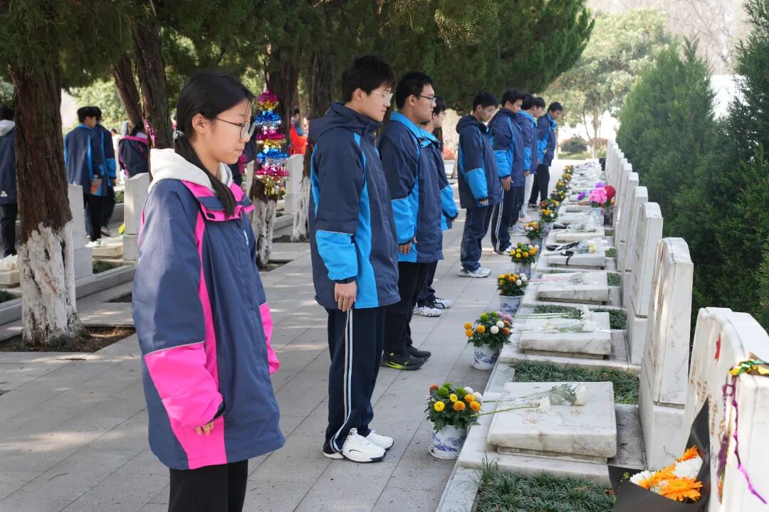 巍巍丰碑下,全体师生庄严宣誓:“继承革命先烈遗志……为实现中华民族伟大复兴的‘中国梦’奋斗不息。”铿锵誓言在陵园回荡。随后,大家缓步绕行,瞻仰烈士墓碑,阅读碑文,感受先烈们无私奉献、英勇牺牲的伟大精神。