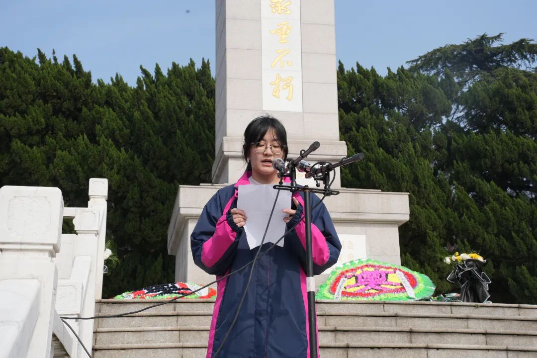 松风阵阵,是英魂的低语;文脉悠悠,是青春的誓言。学生代表沈家谊同学号召全体同学铭记历史,不负韶华,做有担当、有骨气的中国青年。她说道:“历史不应被遗忘,精神更需要传承。对先烈最好的告慰,就是吾辈自强。”